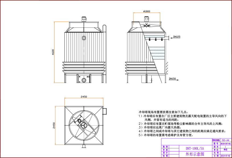本系列方形逆流式冷卻塔采用逆流式氣熱交換技術,使冷空氣從冷卻塔底部進風,逆流往上進入填料層,實現熱交換帶著熱量。主體采用全鋼結構,玻璃鋼護板,塔體設檢修扶梯供塔頂設備的正常維護管理。采用S波紋填料,改性PVC材料,特殊構造的流水膜以擴散淋水面積;通過噴淋管道和噴頭散濺式的布水方式,實現布水均勻,加大散熱量,增強冷卻效果。